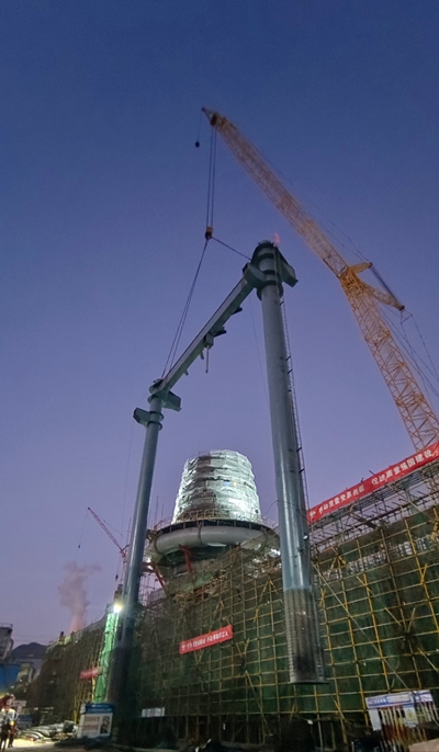 10月12日,中国十七冶集团有限公司承建的福建三明三钢本部高炉工程新1#高炉下部框架柱组对拼接完成,总重65.711吨,起钩下落一气呵成,全程1小时5分钟,成功完成了三明项目钢结构的首次吊装,标志着新1#高炉进入结构安装、设备进场阶段,同时也拉开劳动竞赛序幕。