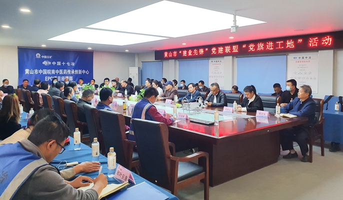 为切实贯彻学习党的二十大精神,扎实推进党建工作与项目管理工作深度融合,11月2日,中国十七冶市政分公司承建的黄山市皖南中医药项目与黄山市建筑业协会联合开展“党旗进工地”活动。黄山市工商联党组副书记张强,共青团黄山市委副书记孙洁,市建管处主任程钢,市建筑协会副会长程杰等参加活动。