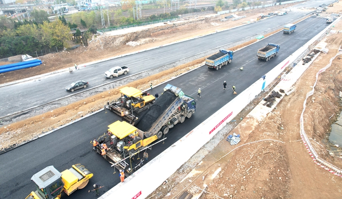 唐河路-安顺路打通工程南起瑞昌路北至仙山路,位于环湾路和重庆路之间,全长14.3公里,是青岛市城市更新和城市建设三年攻坚行动的重点工程之一。建成后将成为又一条贯穿市北、李沧、城阳三区的南北向大动脉,进一步完善青岛市主干路网体系。并将极大提升周边居民的出行便利性,为周边百姓和片区开发提供充分的基础设施条件。为保障本次沥青摊铺工作能够顺利进行,项目部科学组织,合理安排,对作业人员进行了详细的技术交底,技术人员现场进行监督指导,严控施工过程中各个环节,保障施工质量。项目部将继续在做好常态化疫情防控的基础上,始终将安全文明施工放在首位,保安全保质量完成后续施工节点,全力冲刺年底主线通车目标。