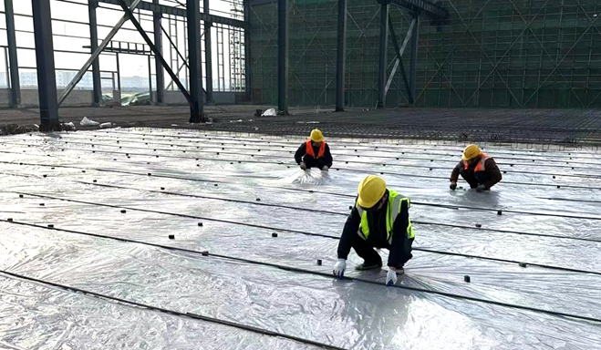 面对时间紧、任务重的压力,项目部提前部署,精细组织,积极调度,施工现场钢结构彩瓦施工、模板支架拆除、挖机平整场地等作业声此起彼伏,呈现一派繁忙景象。经过上百名建设者在春节期间的连日奋战,1月27日项目1#厂房钢结构屋面瓦全部安装完成,厂房内部各小单体完成,3#、4#厂房钢结构保温棉钢丝全部拉完。