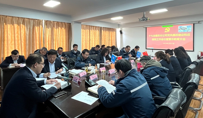 2月27日下午,中国十七冶建安分公司召开2023年党风廉政建设和反腐败工作会议暨警示教育大会。会议传达了中国五矿、中冶集团、十七冶2023年党风廉政建设和反腐败工作会议暨警示教育大会精神,通报了有关警示教育案例。会议以现场+视频的形式召开,分公司领导班子、经理助理、副三总师、机关及实体单位负责人,各项目部领导班子、党支部书记、经营及物资负责人参加会议。