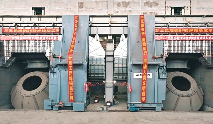 项目位于云南省玉溪市峨山大化产业园区,此次升级改造项目共分为两个系统,即炼钢系统与炼铁系统。炼钢系统施工主要内容包括新建炼钢连铸主厂房(15-31线)、3#/5#转炉及其配套辅助设施等。炼铁系统施工内容包括新建3#/5#高炉及其配套辅助设施等。此次倾动试车的3#、5#转炉炉壳和托圈均为超高、超宽、超重的大型设备,炉壳外径为6.68米,高度为9.2米,重达122吨;托圈直径为8.78米,重145吨,转炉本体设备总重量约超435吨。项目投产后将成为云南省最大的炼钢生产基地,能有效满足周边地区的钢铁需求。
