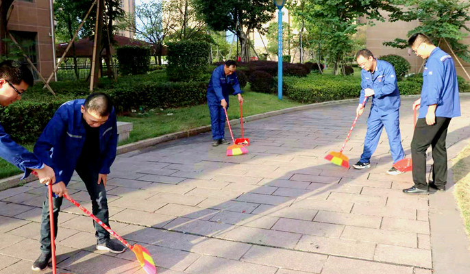 1031日清晨,为深入贯彻落实习近平新时代中国特色社会主义思想,开展“不忘初心,牢记使命”主题教育,宝钢德盛项目党支部组织党员与积极分子来到当地社区、厂区开展志愿服务活动。志愿者们来到小区楼下,清扫路面的树叶、果皮等,经过与志愿者的齐心协力地清洁,小区道路更显干净整洁。