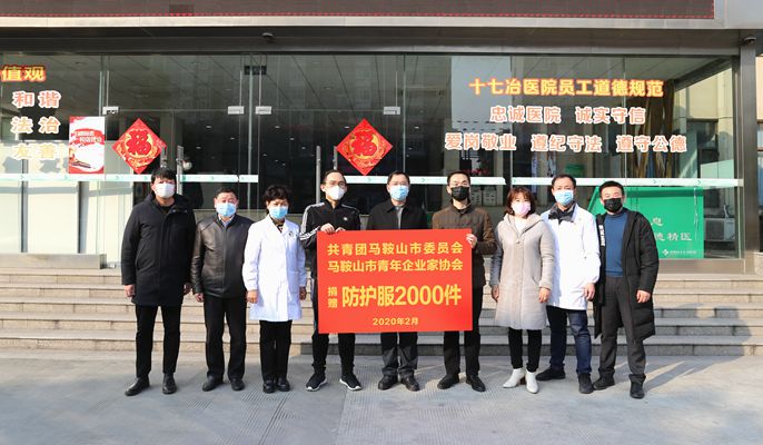 25下午,马鞍山团市委书记马鑫带领部分工作人员,将2000套三级防护服捐赠给十七冶医院,帮助医院缓解了燃眉之急。