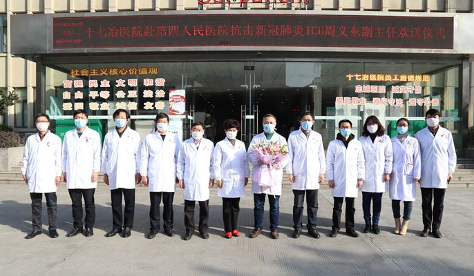 222日上午,十七冶医院重症医学科副主任周义东援助马鞍山市第四人民医院抗击新型冠状病毒肺炎疫情。这是十七冶医院第十位援外抗击疫情的勇士。医院党政领导班子,相关部门负责人为周义东送行。
