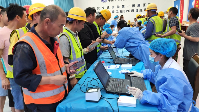 为持续巩固疫情防控成果,切实保障工友生命健康安全,推动“我为群众办实事”实践活动走向深入,5月26日,中国十七冶集团陕西分公司西安交通大学附属第一医院国际陆港医院项目党支部组织开展了“新冠疫苗接种服务到现场”活动,共有441名工人及管理人员完成接种。