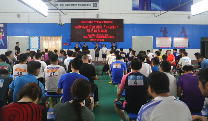 为热烈庆祝中国共产党成立100周年,积极营造良好的文化氛围,6月19日上午,中冶置业(安徽)公司联合慈湖高新区管委会联合举办了“庆建党100周年暨第四届双创杯羽毛球友谊赛”活动,慈湖高新区管委会党群工作部部长黄海斌、工会主席徐国府,中冶置业(安徽)公司党委书记徐良蓉等人参加活动。