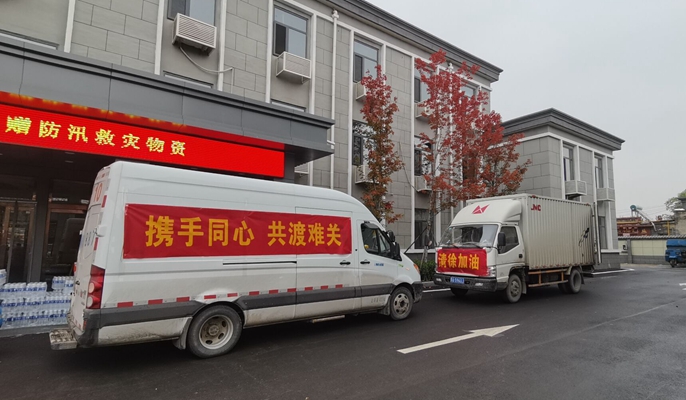 10月14日上午,中国十七冶集团清徐项目部4辆救灾物资运输车辆抵达山西省清徐县王答乡,为一线防汛人员送上急需的棉大衣、矿泉水和方便面等物质,为山西省清徐县防汛救灾积极贡献力量。