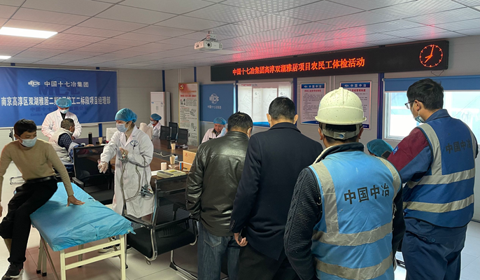 为增强农民工职业健康防护意识,12月3日,十七冶江苏分公司高淳双湖雅居二期B区施工二标段项目部组织开展“健康体检进工地、真情服务农民工”活动,切实为项目一线作业人员的健康安全提供保障。