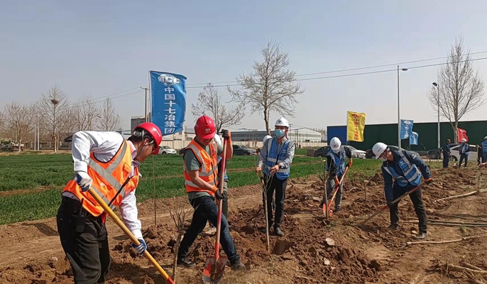 4月3日下午,十七冶建安分公司石家庄深泽市滹沱河行洪区内村庄搬迁安置工程项目部组织开展了“植树添绿,美化家园”义务植树活动。