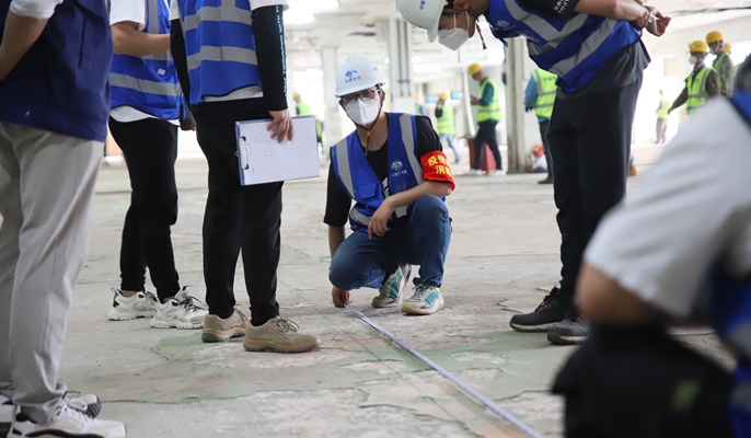 12日上午七点,第一批先遣队伍便到达指定地点,150名作业人员迅速投入战斗,当天完成旧有厂房垃圾清运近百车约50吨,PVC地板铺设约4000平方米。